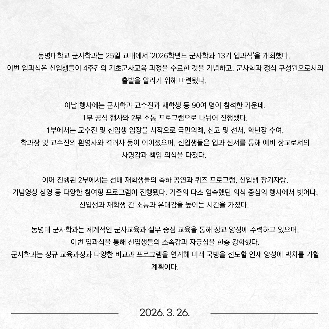 동명대 군사학과, 13기 입과식 개최